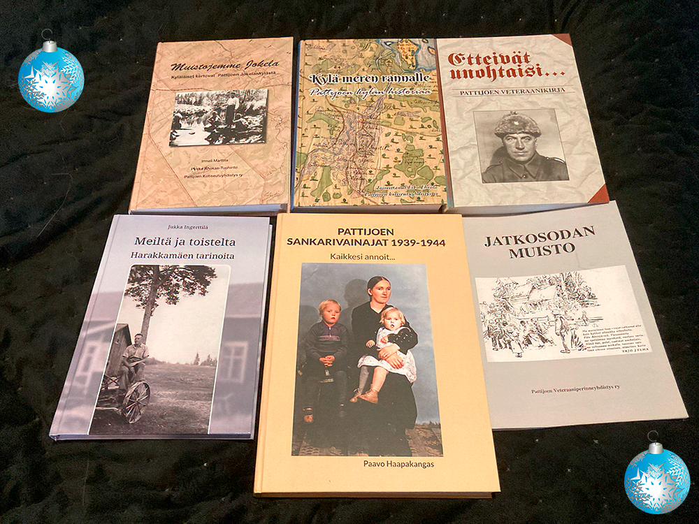 Pattijoen kotiseutuyhdistys myy seuraavia kotiseututeoksia: Kylä meren rannalle – Pattijoen kylän historiaa 20€ Muistojemme Jokela – Kyläläiset kertovat Pattijoen Jokelankylästä […]